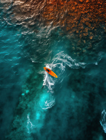 Capturing the Thrilling Essence: A Breathtaking Aerial Shot of a Surfer in Action