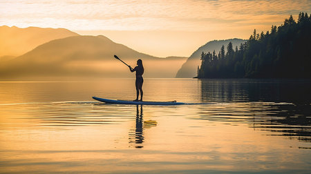 Generative AI with a Woman Paddleboarding on a Still Lake