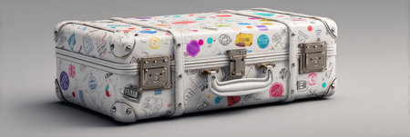 Colorful suitcase mockup with a variety of fun stickers adorning the surface, showing a playful and adventurous spirit in a clean design.
