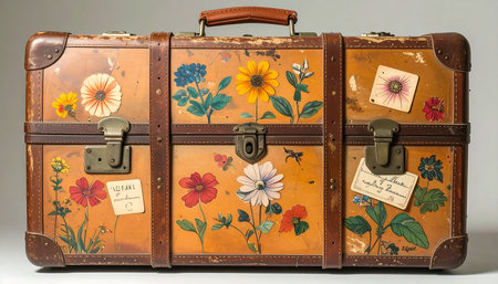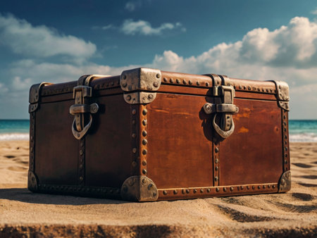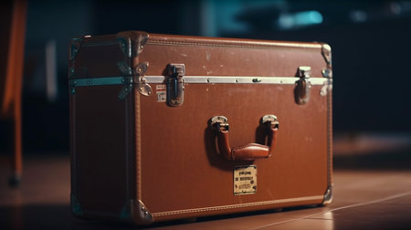 This image features a vintage leather suitcase with elegant design and intricate details, perfect for evoking a sense of nostalgia and travel.