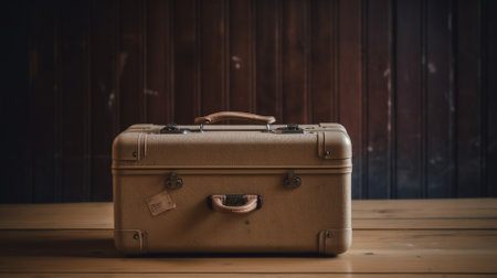 Vintage suitcase on wooden floor in dark room, retro toned.generative ai