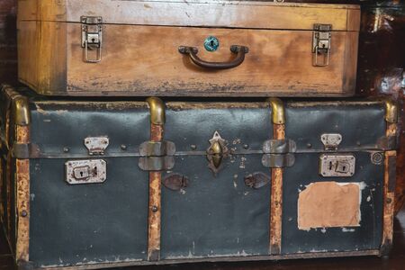 Retro suitcases. old luggage. vintage baggage. retro case background