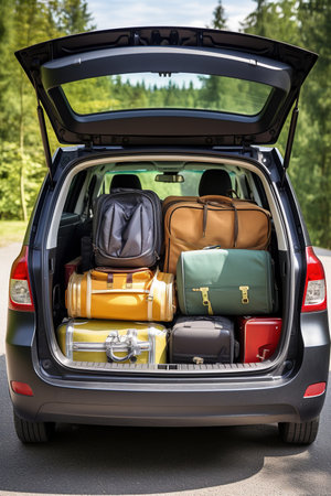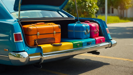 Explore the anticipation of new adventures with suitcases and bags neatly arranged in the open trunk of a car. This image encapsulates the essence of travel and the excitement of embarking on a journey to new destinations.