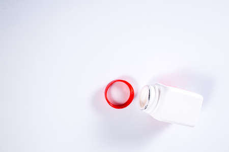 White plastic bottle with a screw cap, standing upright on a plain white background. Minimalistic design ideal for product packaging, branding, or mockup purposes.