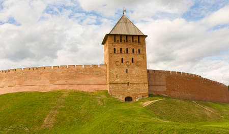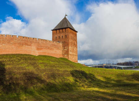 Tower of fortress Kremlin in town Great Novgorod, Russia.