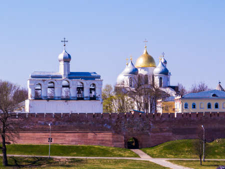 Veliky Novgorod, the old city, the ancient walls of the Kremlin, St. Sophia Cathedral. Famous tourist place of Russia.