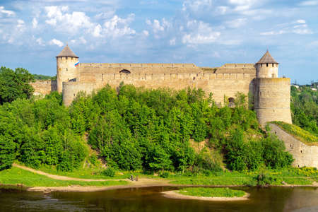 The ancient Ivangorod fortress on the bank of the Narova River. Leningrad Region, Russia