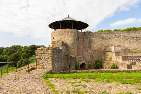 Sunny September day in the ancient Ivangorod fortress. Leningrad region, Russia