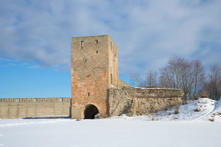 Ancient Fortress in Ivan-Gorod (Ivan City) on the border of Russia and Estonia (located on the russian side of the border) at the early spring morning