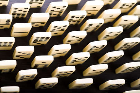 Dominoes on a wooden table. Domino effect. Selective focus.