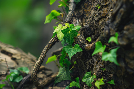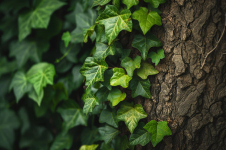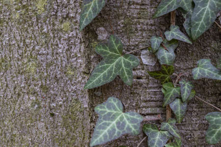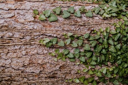 Green ivy leaves on the bark of a tree. Nature background