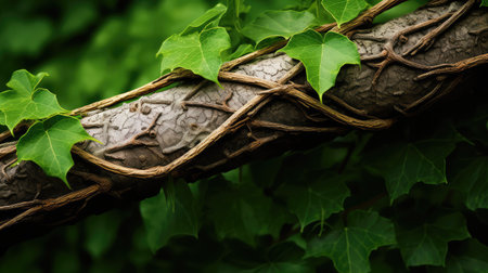 brown ivy with leaves on a black background, showcasing an organic texture. the lush landscape background adds depth to the aerial photography. the light black and green hues contrast beautifully with the dark azure and white tones. captured with a ricoh gr iii, this photo highlights the eco-friendly craftsmanship of nature. ai generated