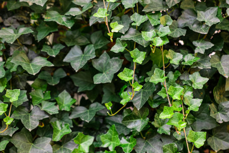 Texture with ivy plant leaves. Summer background with lavish carpet of ivy.