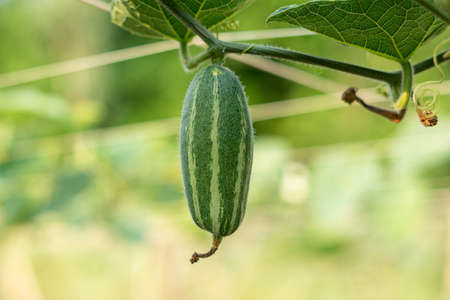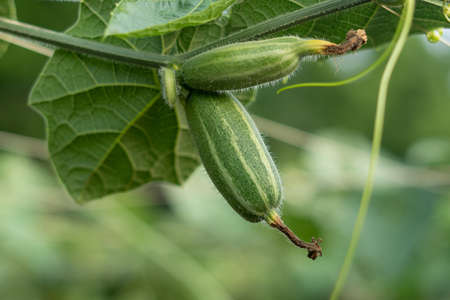luffa acutangular, Cucurbitaceae green vegetable fresh in garden on nature background