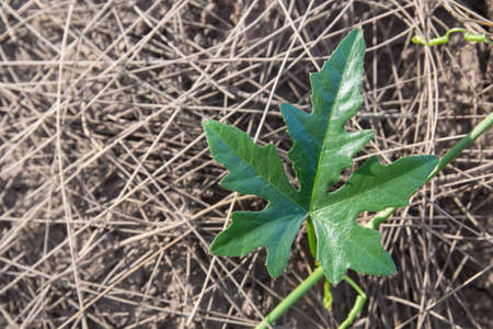 Morning sunlight lighted some ivy gourd leaf close-up shot in the Indian agriculture firm.
