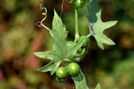 Leaves and green (immature) fruits of the bryony (Bryonia dioica).