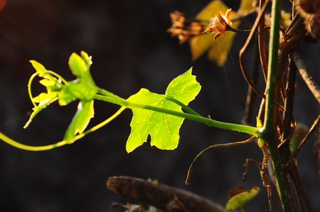 tendril is a vine that moves along the soil With a hand for traction and copy space.
