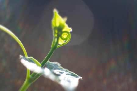 abstract background with young cucumber tendril