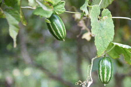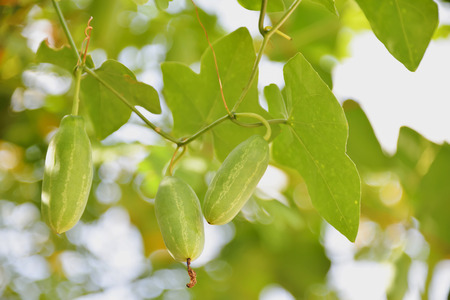 Coccinia grandis Ivy gourd is a wild plant. The leaves, root, and fruit are used to make medicine also called Creeping-cucumber growing on jute stick