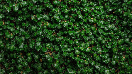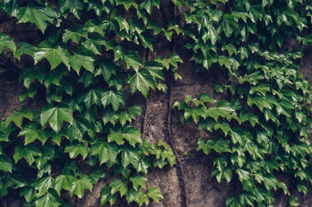 Green ivy wall background, a wall covered with green ivy vine leaves