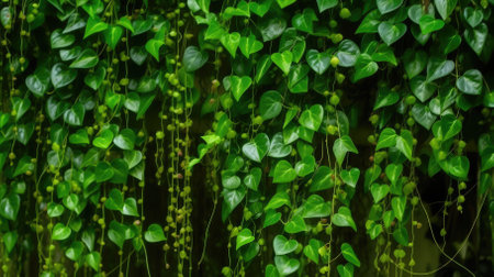 Vibrant ivy leaves spread gracefully, creating a striking contrast with the dark backdrop.