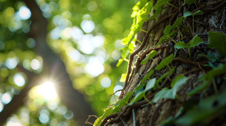 Green ivy growing on the side of an old tree trunk, in the style of National Geographic photography. --ar 2:3 --v 6.1 Job ID: cd33acca-e4ca-42c9-bcac-ed7b6ade0d88