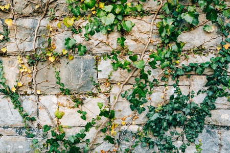 Ivy on a brick wall. Evergreen. The landscaping of the yard. Ecology.