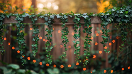 outdoor party decorations, garden fence decorated with greenery garlands and bunting flags for a festive touch at the garden party