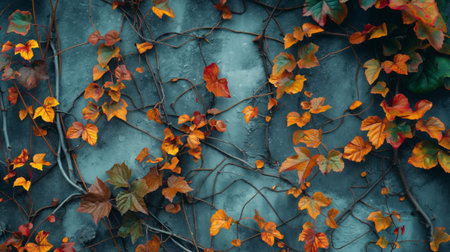 High-resolution photo of colorful autumn leaves and intertwining vines against a textured backdrop
