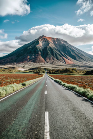 Road to the volcano in Lanzarote, Canary Islands, Spain