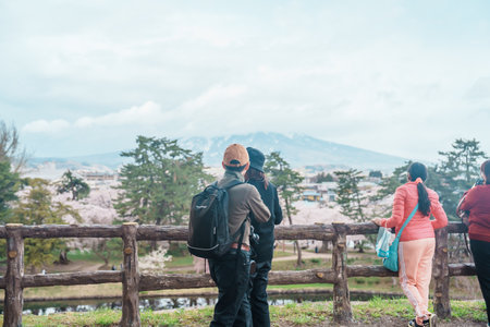 Tourists sightseeing Hirosaki Castle park with Sakura Cherry Blossom in Spring season. Hirosaki city, Aomori prefecture, Tohoku, Japan, 25 April 2025