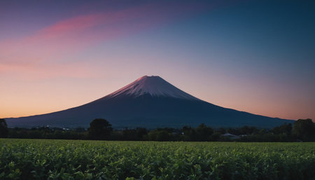Mt Fuji at sunset, Fujiyoshida, Japan.