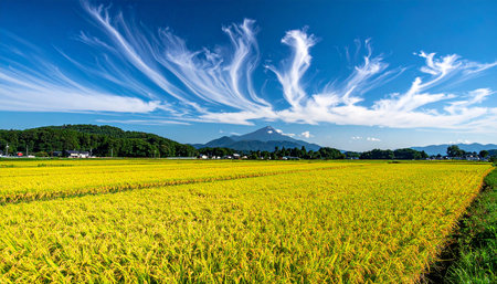Rice field and Mt. Fuji in summer, Yamanashi, Japan