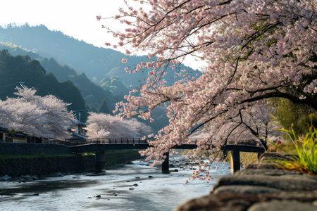 Cherry blossoms in full bloom in Kyoto, Sakura Blossoms in Full Bloom. Maruyama Park comes alive as vibrant sakura Ai generated