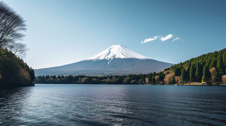 An AI generated illustration of a majestic mountain peak against a crisp blue sky