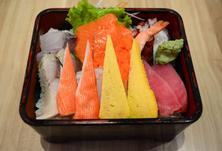Fresh sashimi seafood rice bowl