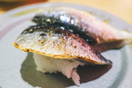 Delicious grilled mackerel sushi placed adorably o