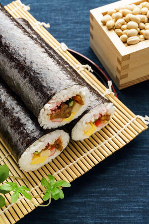 Japanese traditional event Setsubun. Scatter parched beans to drive out bad luck and call in good luck (on the last day of winter according to the lunar calendar)