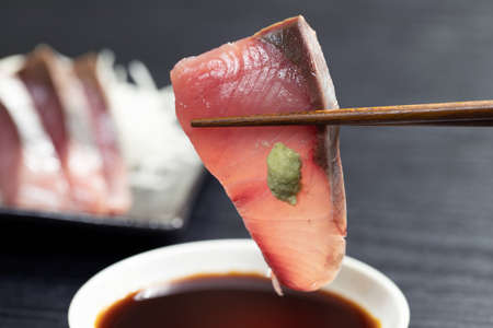 Tuna sashimi on black background. Japanese food style.