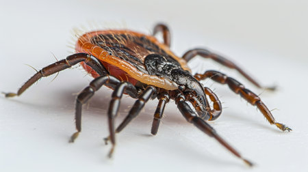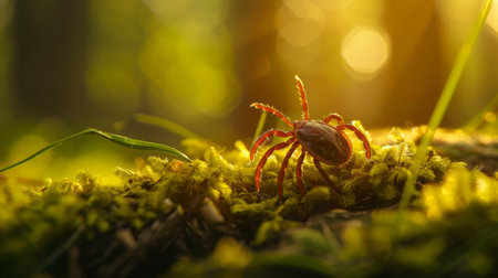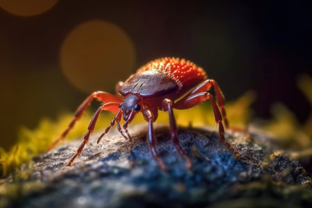 Tick insect in a close-up image. Ticks are known for their parasitic nature, feeding habits, disease transmission, and impact on human and animal health. Generative AI