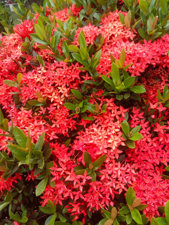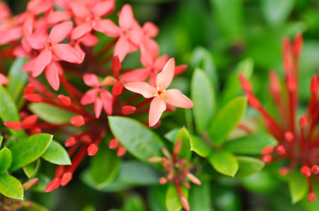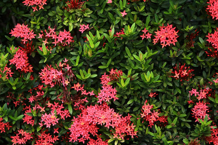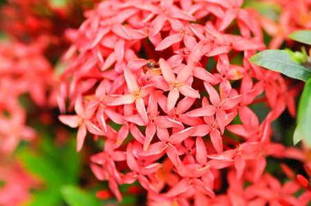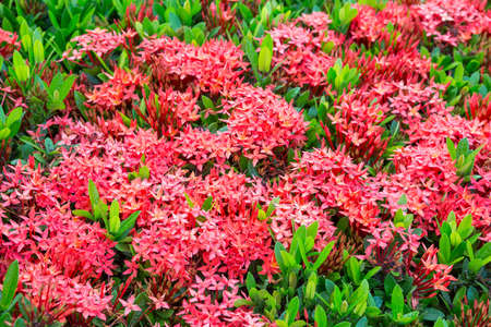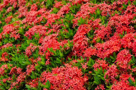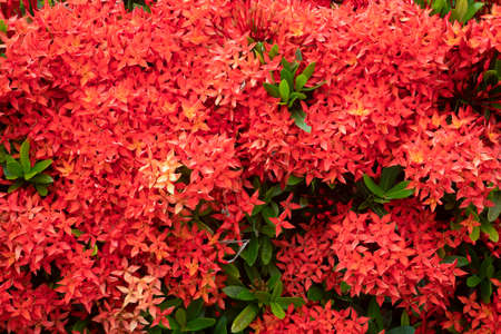 Red West Indian Jasmine or Ixora flower nature view decoration background texture.