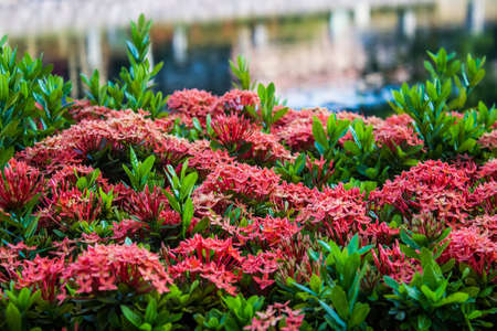 Red Ixora Chinensis Flower plant for nature background.