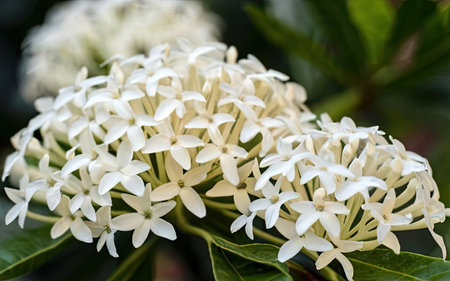 White Ixora flower blooming in the garden, Thailand.