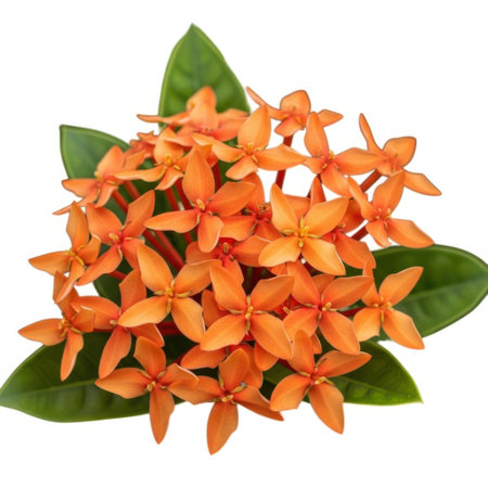 Ixora on a white background. It is a genus of flowering plants in the Rubiaceae family.