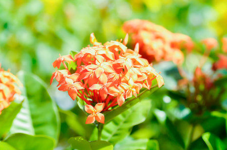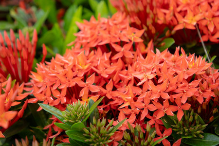 Ixora chinensis Lamk, Ixora spp or West Indian Jasmine and orange flower in the garden