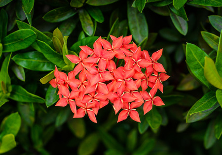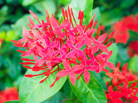 Red Ixora flower blossom in the garden