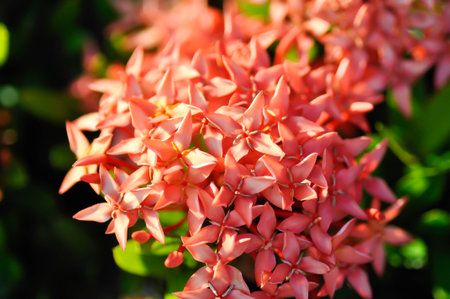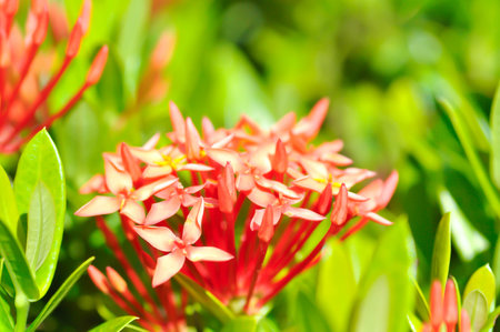 Red Ixora coccinea flowers in midday