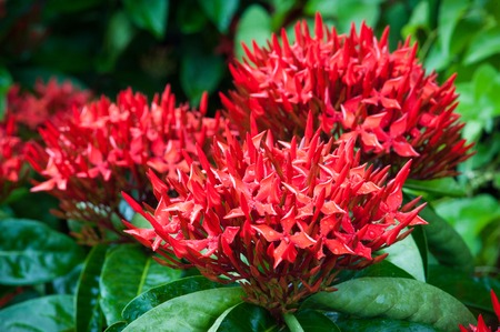 red Ixora flowers in the garden