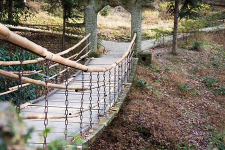 Suspension bamboo bridge in arboretum Sochi, Russia