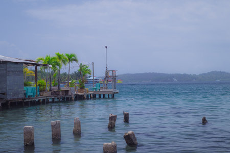 BOCAS DEL TORO, PANAMA - APRIL 23, 2015 : Bocas Town, a pier and oceanview, comprising an archipelago off the Caribbean coast.